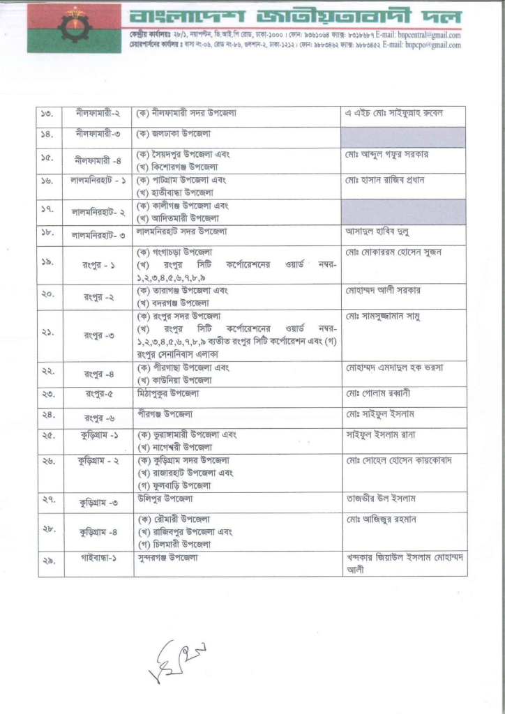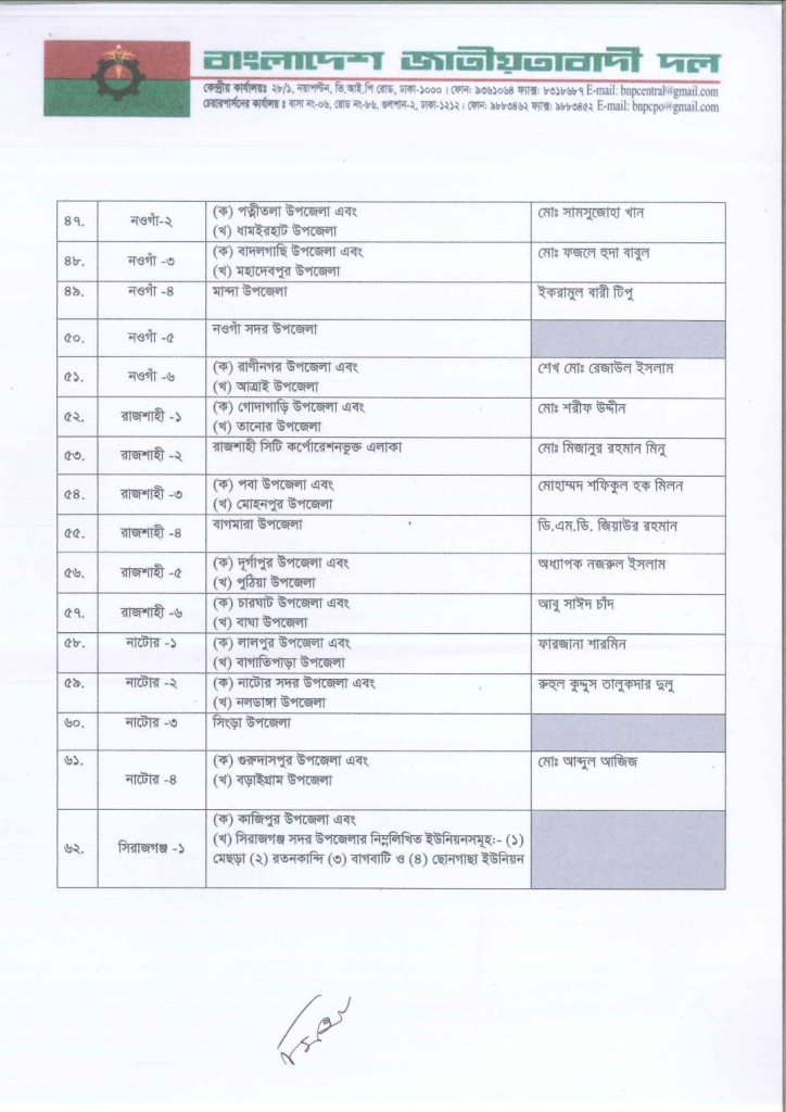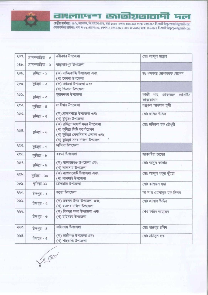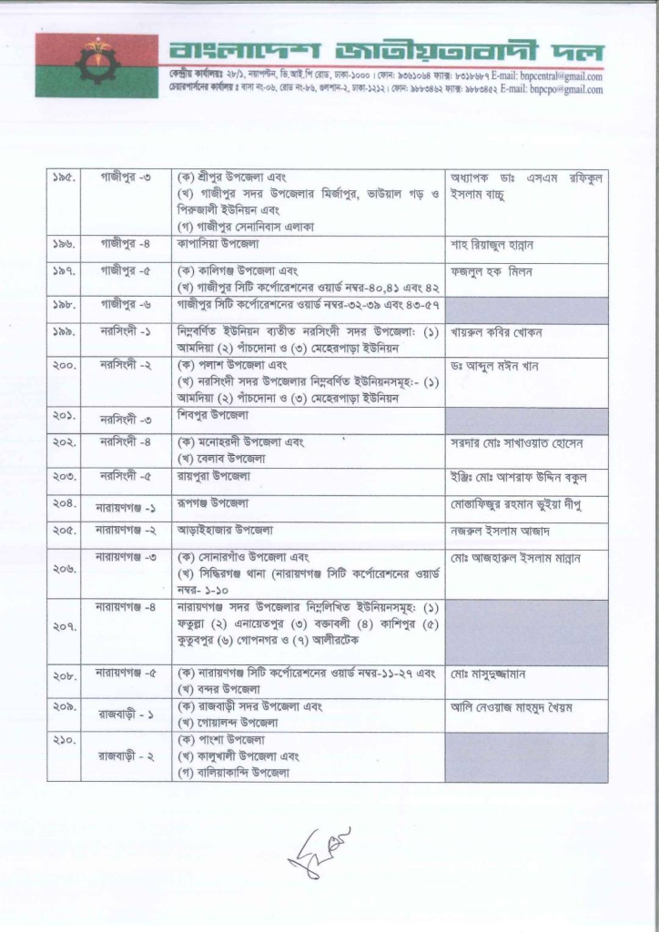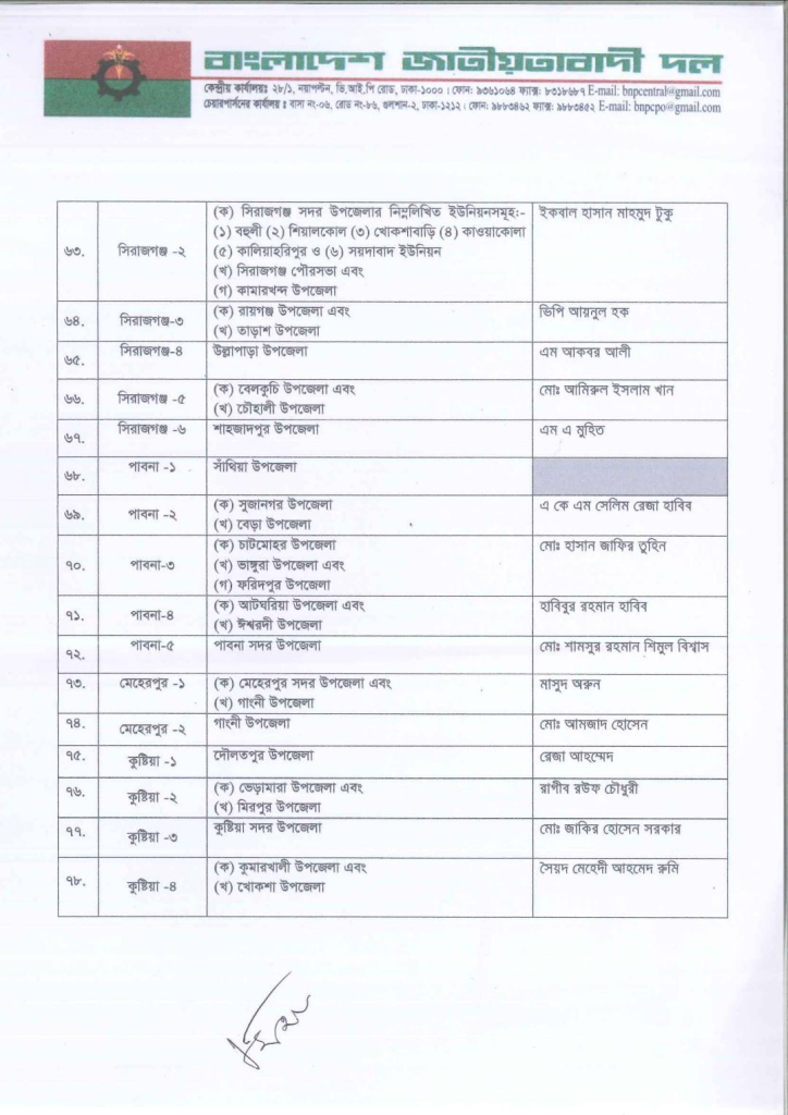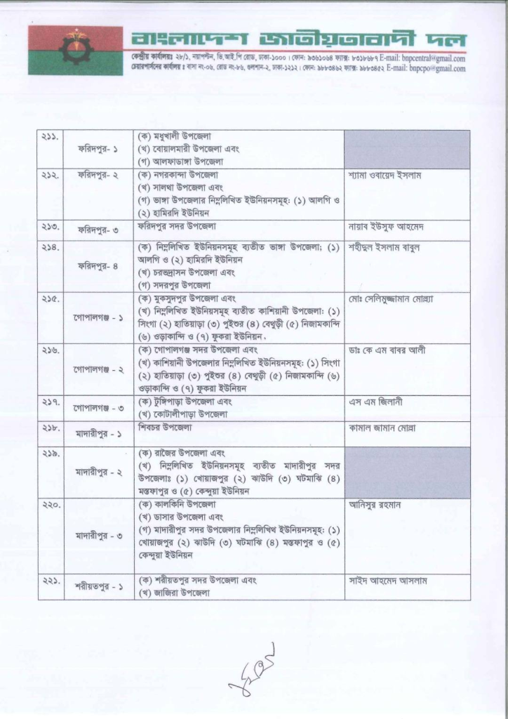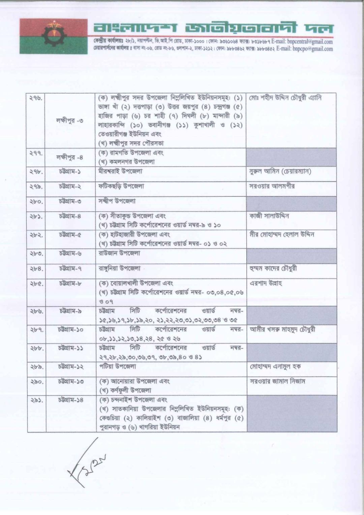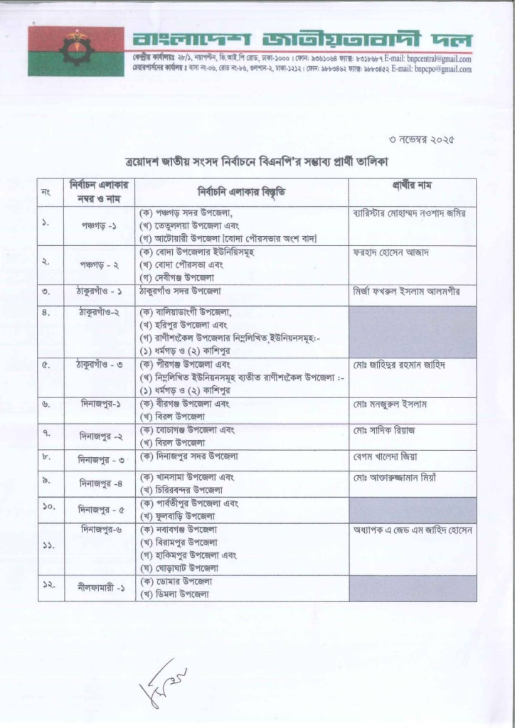 সোমবার (৩ নভেম্বর ২০২৫) বিএনপি চেয়ারপারসন কার্যালয়, গুলশান থেকে সরাসরি ঘোষণার মাধ্যমে এই প্রার্থী তালিকা প্রকাশ করা হয়।